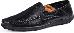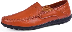 Mens Handmade Leather Slip-On Loafers Casual Round Toe Flat Penny Loafers Soft Breathable Driving Walking Boat Shoes