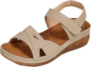 Women Comfortable Sandals Orthotic Walking Sandals Orthopedic Arch Support Sandal Slip On Low Wedge Casual Sandal Adjustable Ankle Strap Concise Casual Summer Shoes